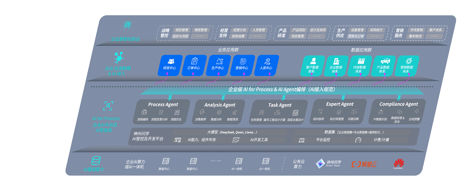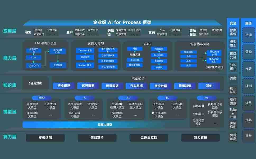 端到端的一站式AI工作空间深度融合了从企业战略规划到日常经营的全流程业务板块,,定向解决车企内部领域多、、、部门多、、、链条长、、、、场景碎片化等难题,,,,支持车企快速构建以AI为核心的生产力写作体系,,实现任务执行与AI能力的无缝集成与交互